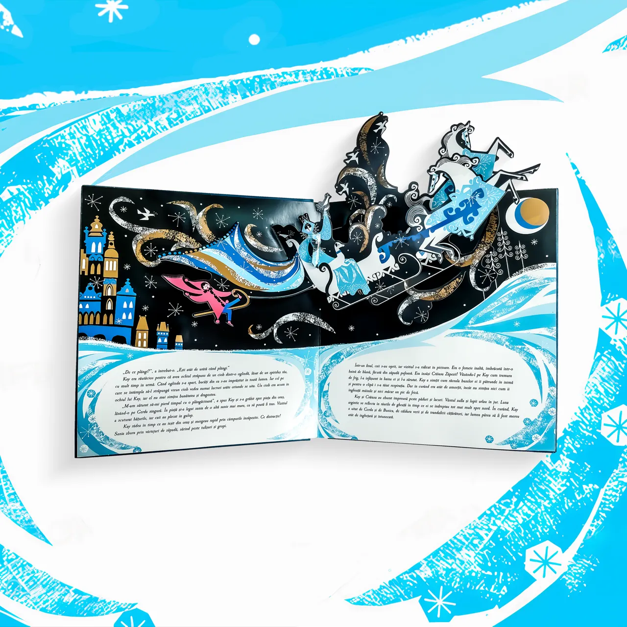 Tânăra Gerda pornește într-o călătorie periculoasă spre Nordul îndepărtat, pentru a-l salva pe Kay, prietenul ei cel mai bun care a fost răpit de Crăiasa Zăpezii.nnFaimosul basm despre curaj, determinare, și iubire este ilustrat de Lesley Barnes și repovestit în această ediție cu elemente aurii și pop-up-uri.