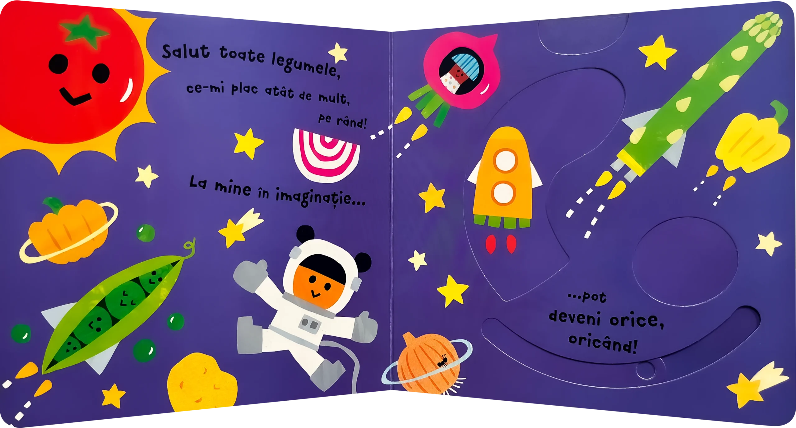 Joacă-te și învață legumele cu ajutorul elementelor, care pot fi mișcate sau deschise!nCitește versurile în voce tare și distrează-te!nElemente mobile, cu care te poți juca din nou, și din nou, și din nou…nLasă-ți imaginația să zboare!