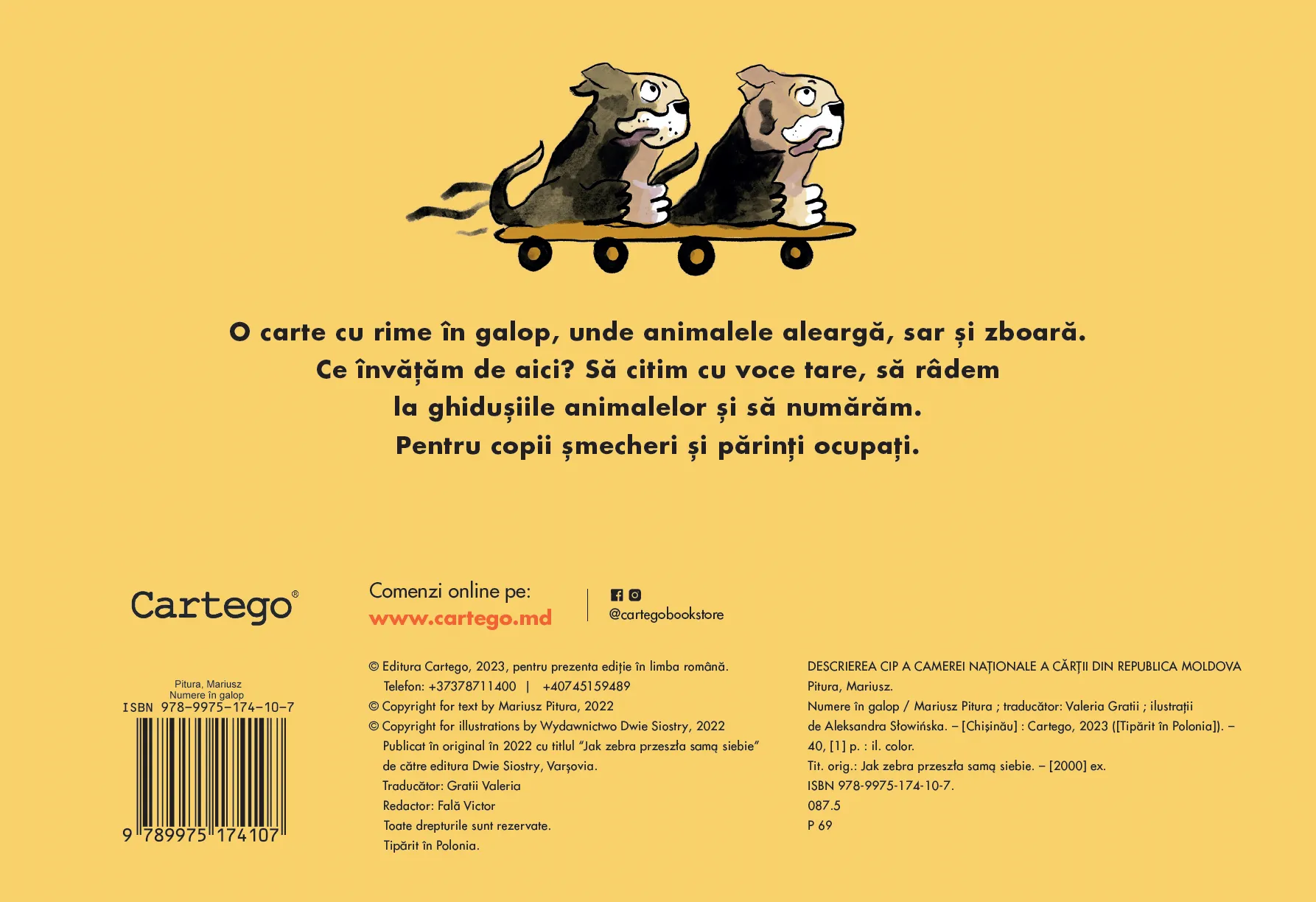 O carte cu rime în galop, unde animalele aleargă, sar și zboară. nCe învățăm de aici? Să citim cu voce tare, să râdem la ghidușiile animalelor și să numărăm. Pentru copii șmecheri și părinți ocupați.