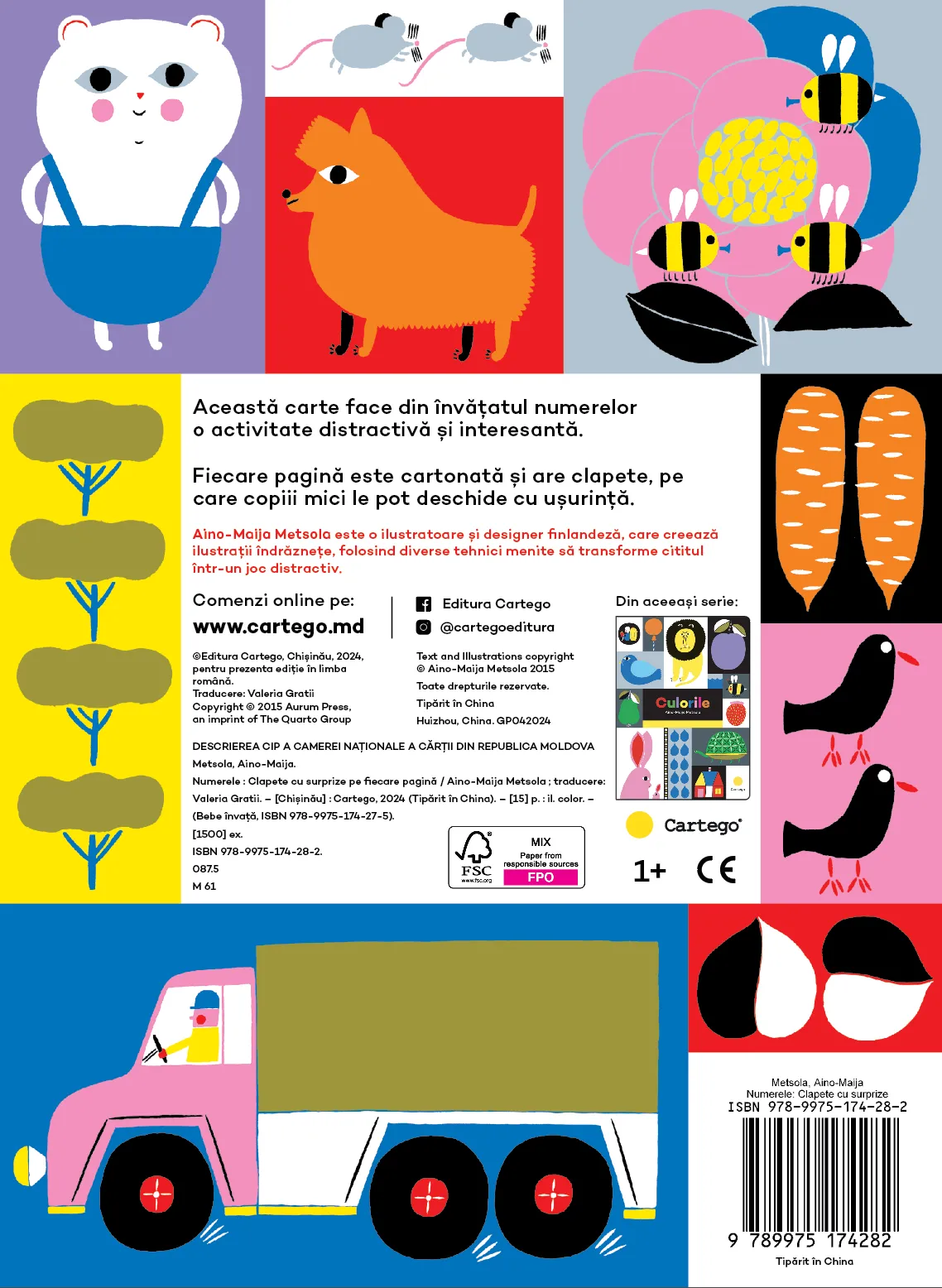 Această carte face din învățatul numerelor – o activitate distractivă și interesantă.n nFiecare pagină este cartonată și are clapete, pe care copiii mici le pot deschide cu ușurință.n nAino-Maija Metsola este o ilustratoare și designer finlandeză, care creează ilustrații îndrăznețe, folosind diverse tehnici, menite să transforme cititul într-un joc distractiv.