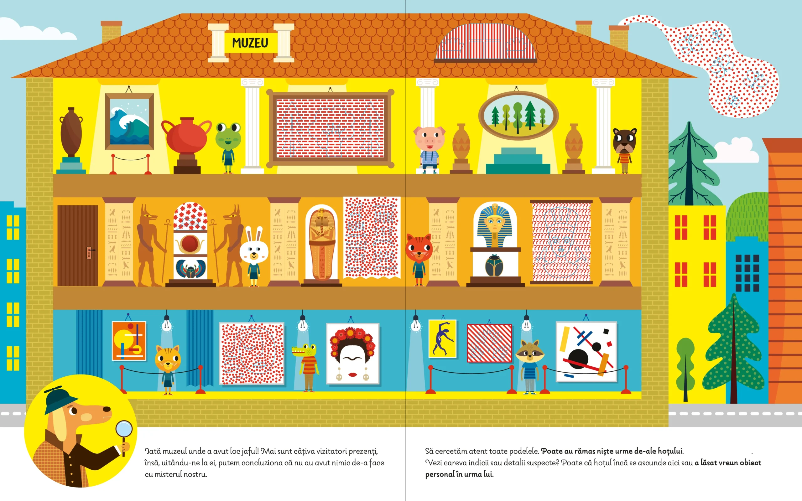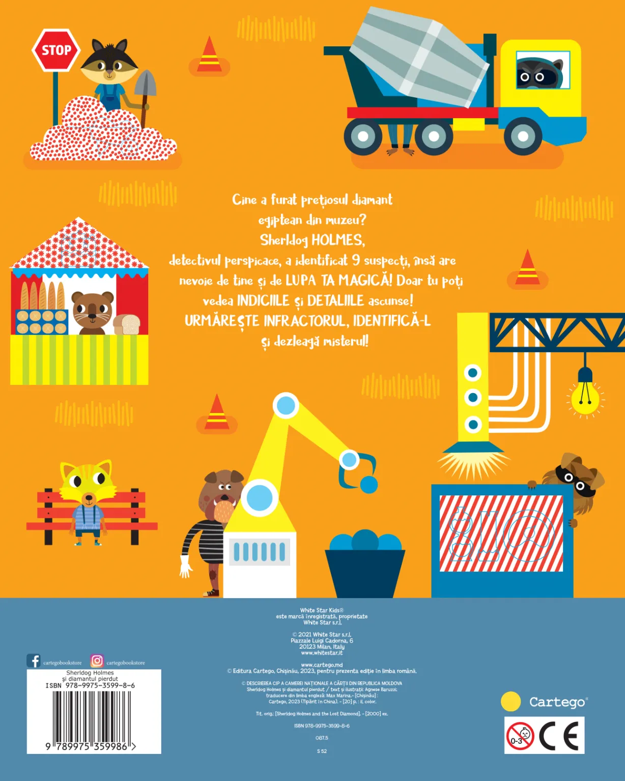 Cine a furat prețiosul diamant egiptean din muzeu? Sherldog Holmes, detectivul perspicace, a identificat 9 suspecți, însă are nevoie de tine și de lupa ta magică! Doar tu poți vedea indiciile și detaliile ascunse! urmărește infractorul, identifică-l și dezleagă misterul!