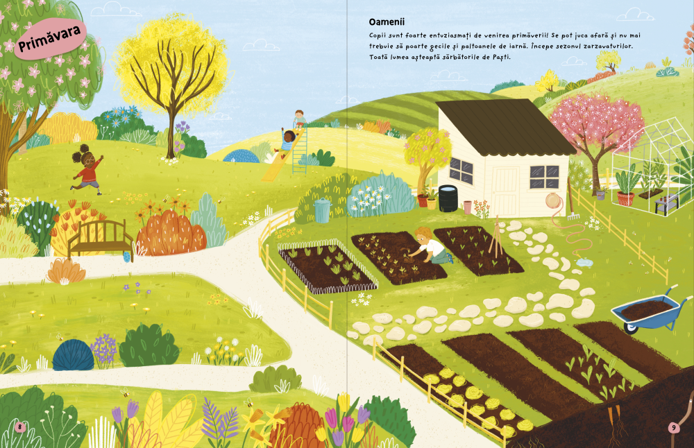 Această carte de activități a fost concepută pentru a familiariza copiii cu conceptele de bază despre cele patru anotimpuri, prin utilizarea unor ilustrații colorate și a peste 250 de autocolante. Cărțile îi ajută pe copii să învețe, prin joc, despre fenomenul de schimbare a anotimpului, sistemul solar, tipurile de vreme, noțiuni din geografie și nu doar, dezvoltând motricitatea fină și imaginația.